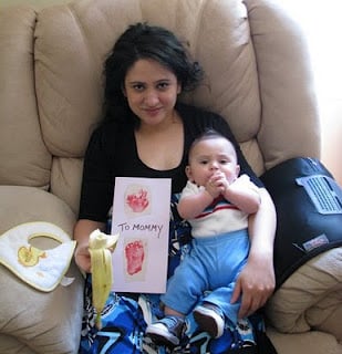 So, we (notice how I am attributing rational thought to a 4-month-old) decided to make mom a homemade card and other hand-crafted items instead.
